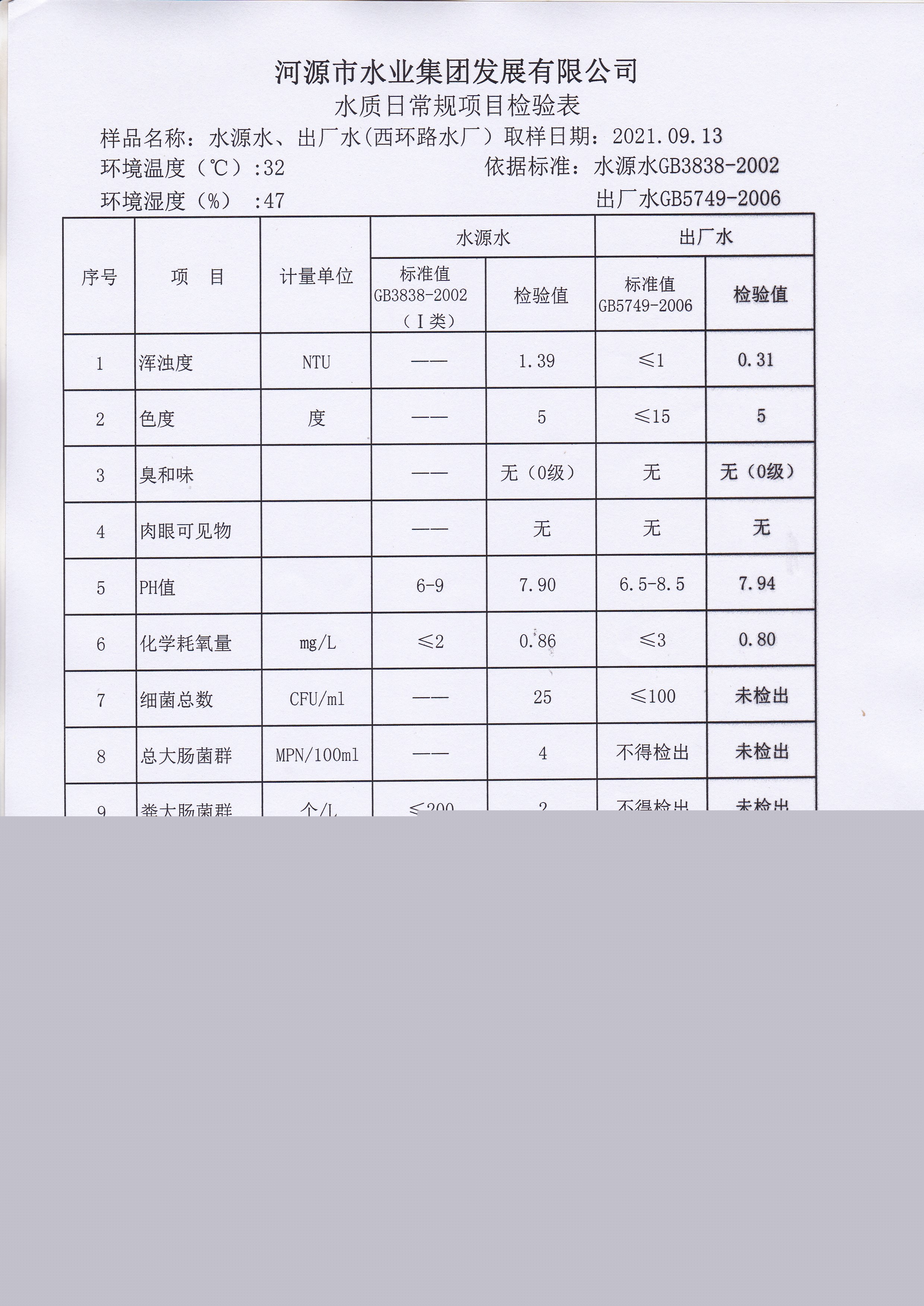 2021年9月13日水質(zhì)檢驗(yàn)報(bào)告 ??