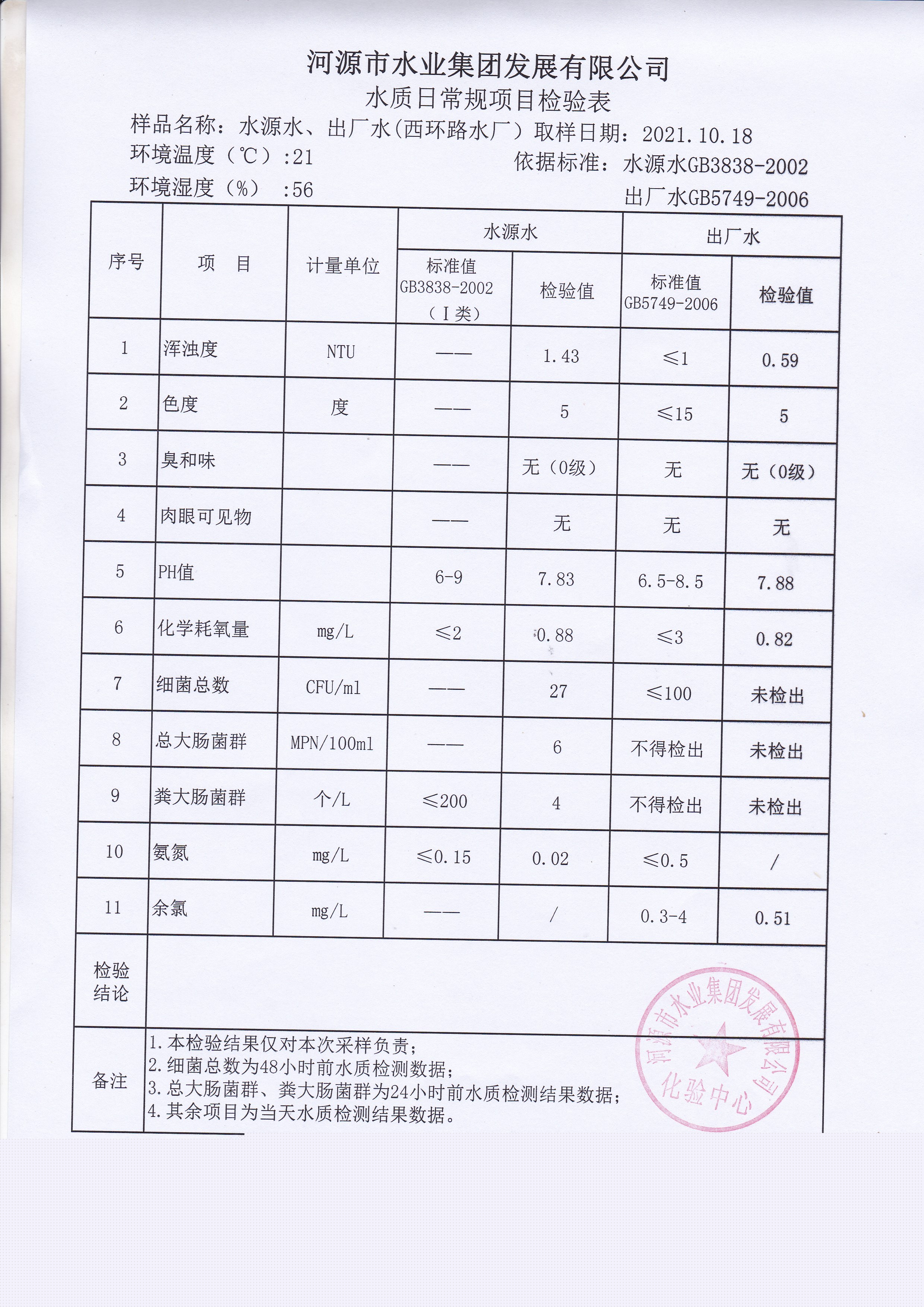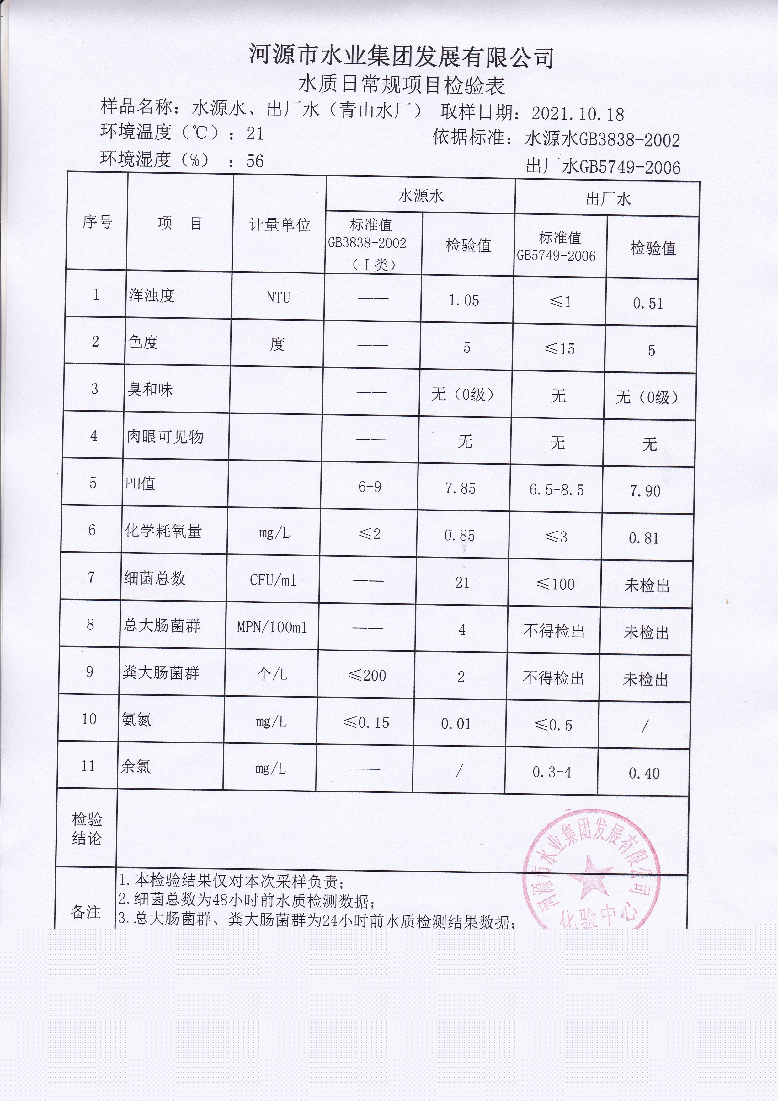 2021年10月18日水質(zhì)檢驗(yàn)報(bào)告