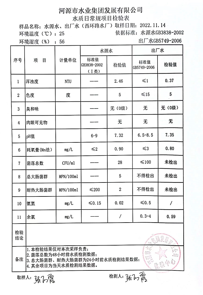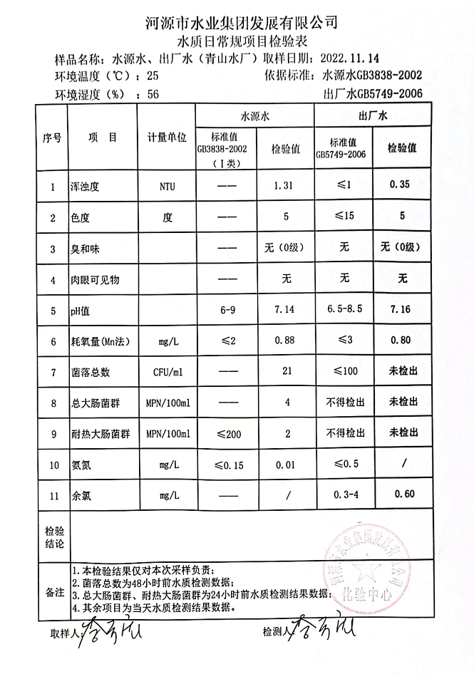 2022年11月14日水質(zhì)檢驗(yàn)報(bào)告