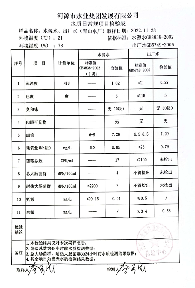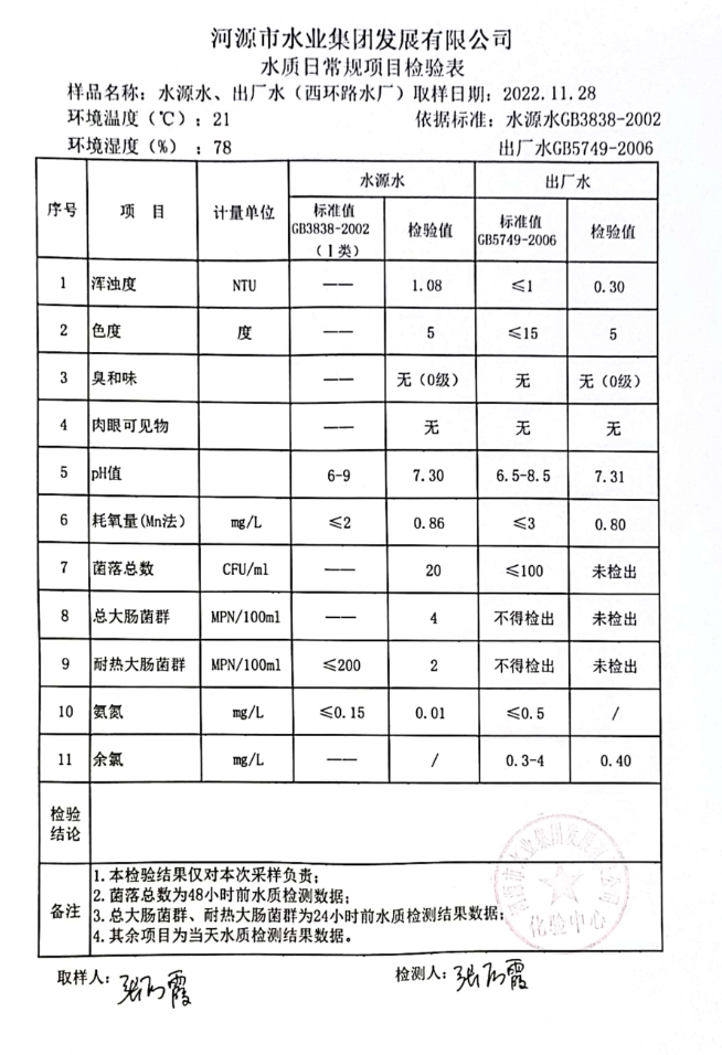 2022年11月28日水質(zhì)檢驗(yàn)報(bào)告