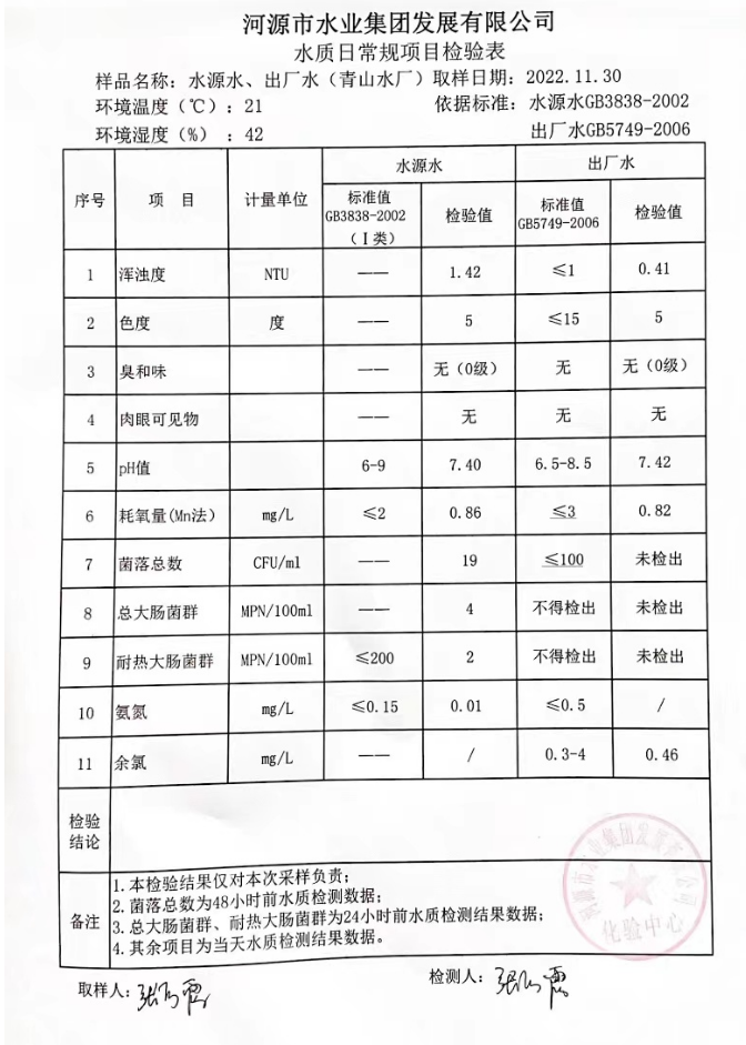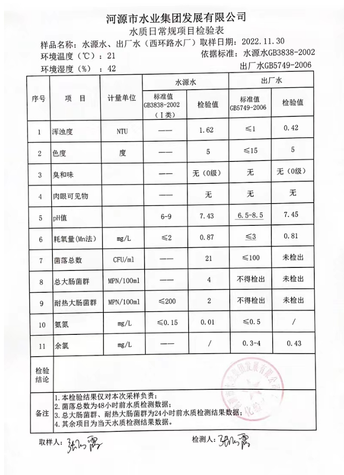 2022年11月30日水質(zhì)檢驗(yàn)報(bào)告