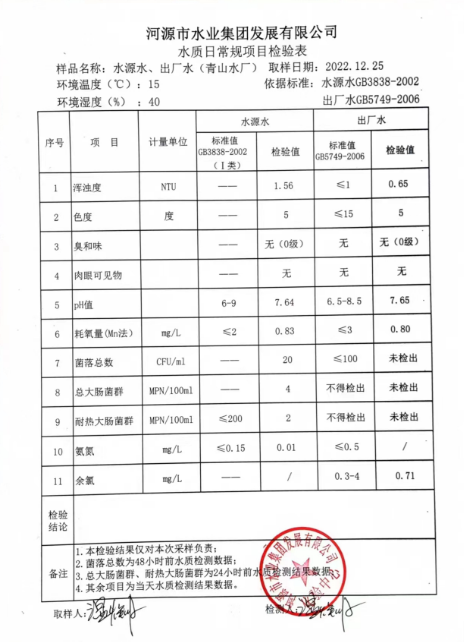 2022年12月25日水質(zhì)檢驗報告