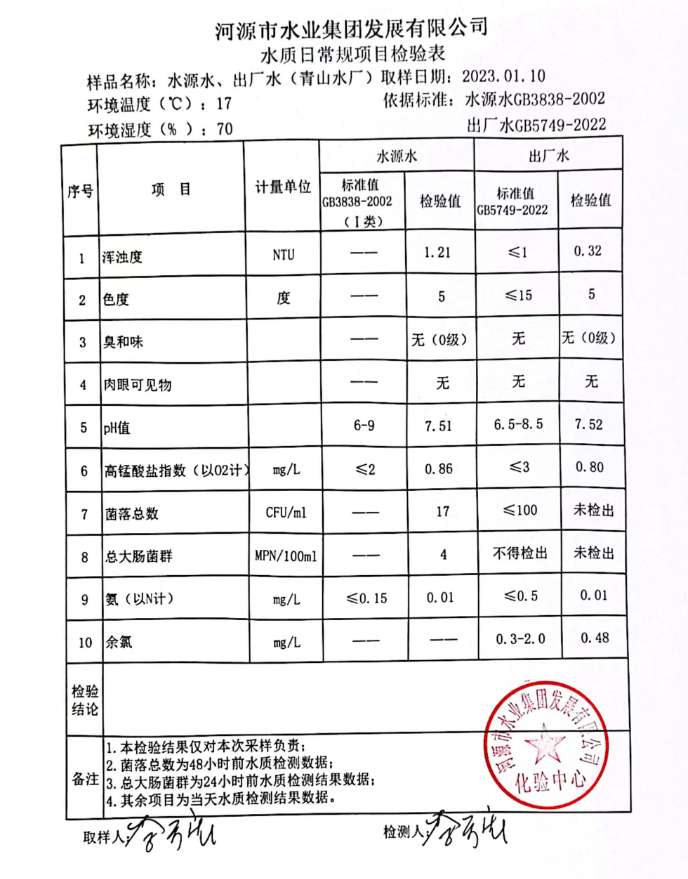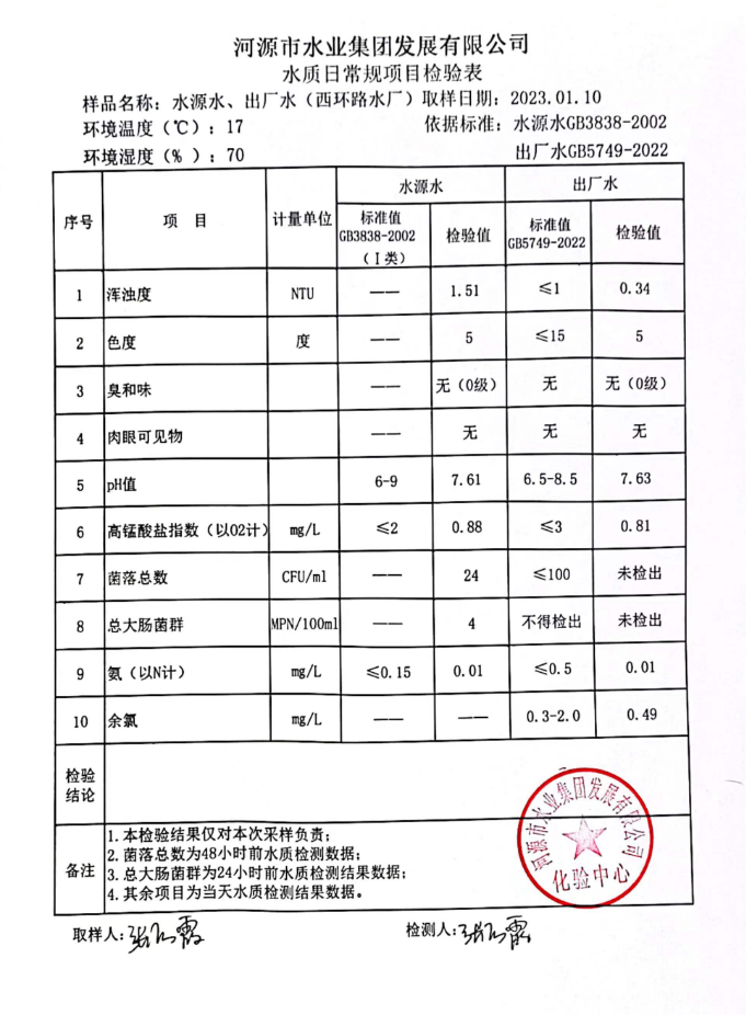 2023年1月10日水質(zhì)檢驗(yàn)報(bào)告