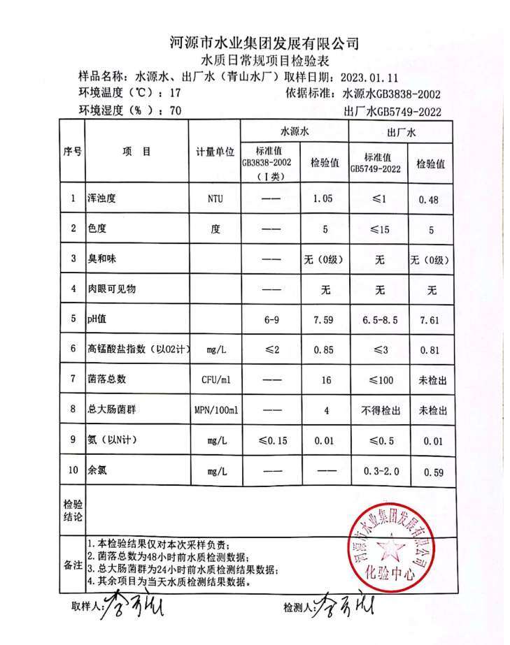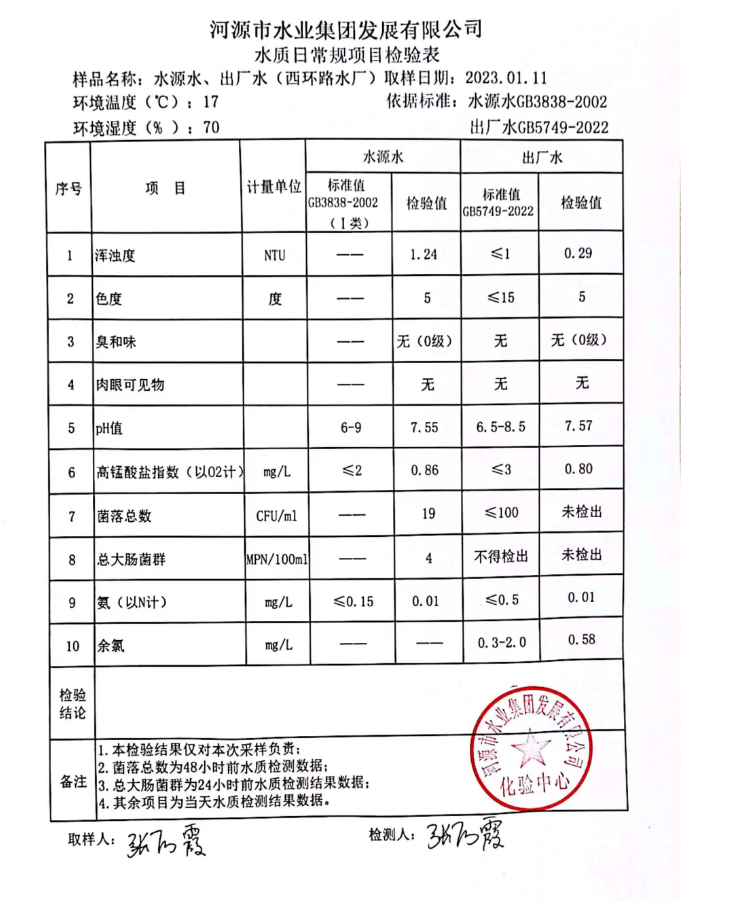 2023年1月11日水質(zhì)檢驗(yàn)報(bào)告