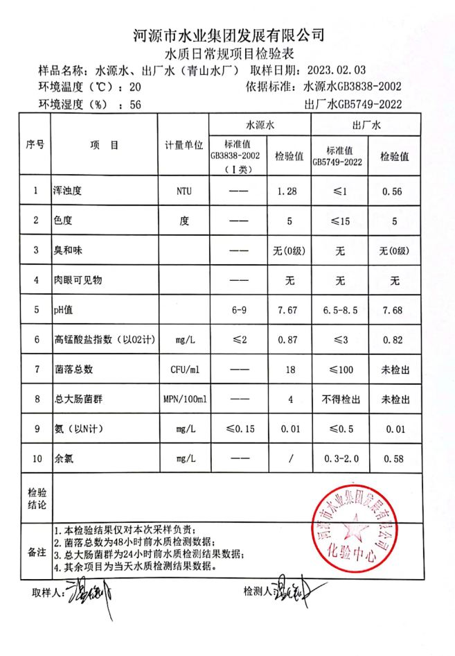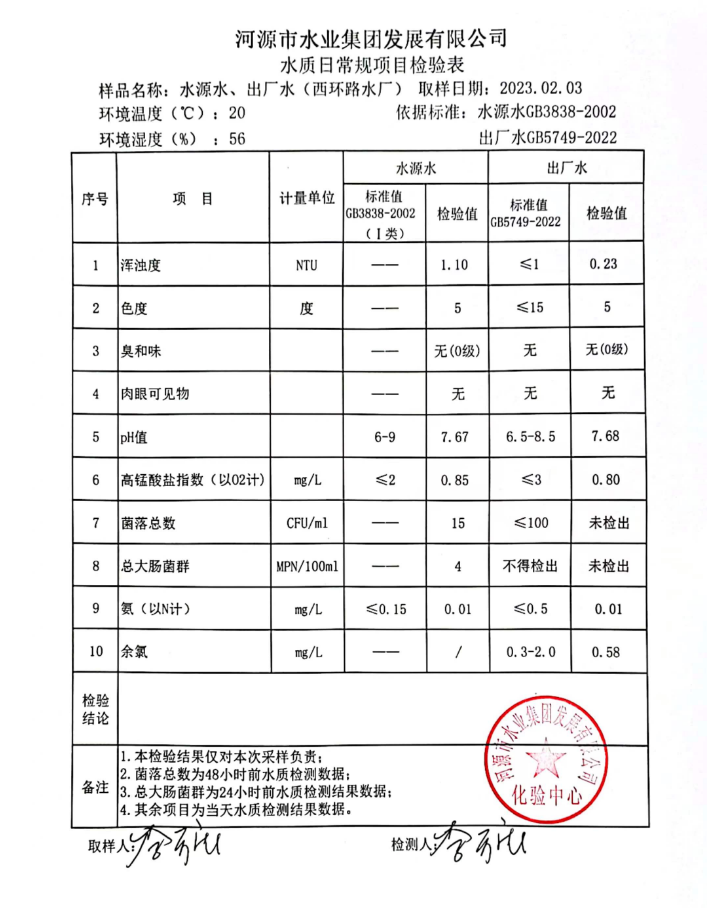 2023年2月3日水質(zhì)檢驗報告