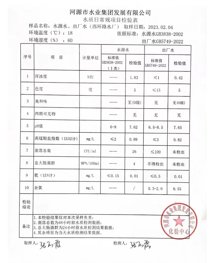 2023年2月4日水質(zhì)檢驗(yàn)報(bào)告