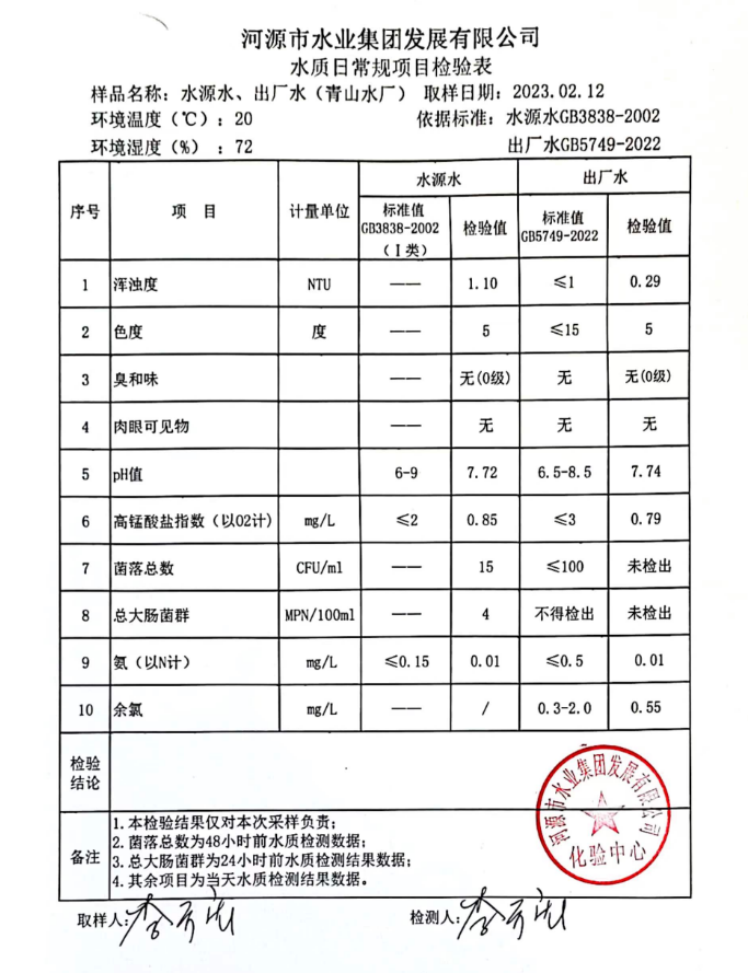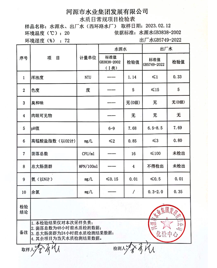 2023年2月12日水質(zhì)檢驗(yàn)報(bào)告