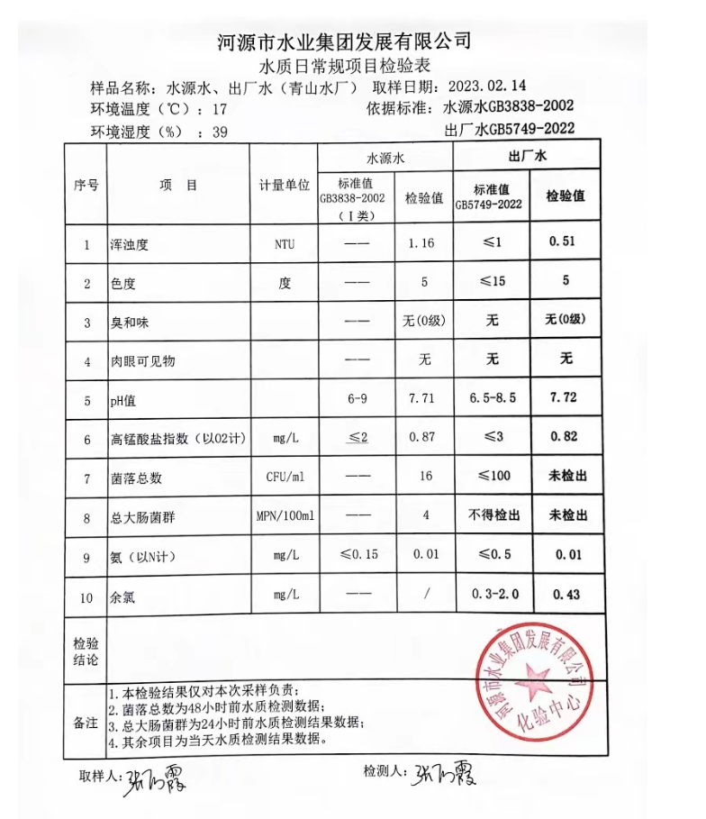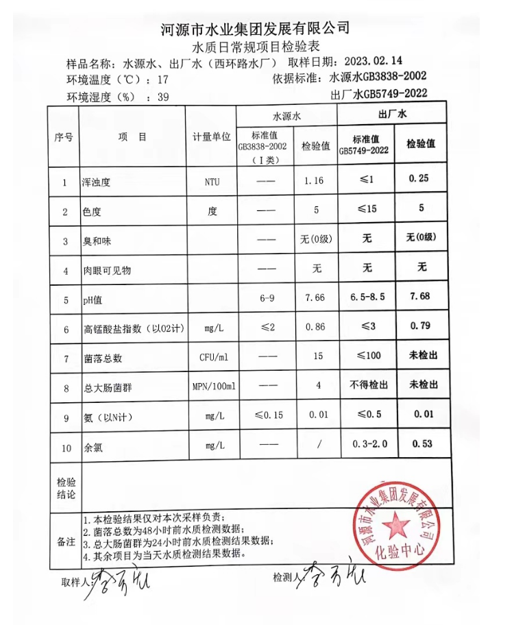 2023年2月14日水質(zhì)檢驗報告
