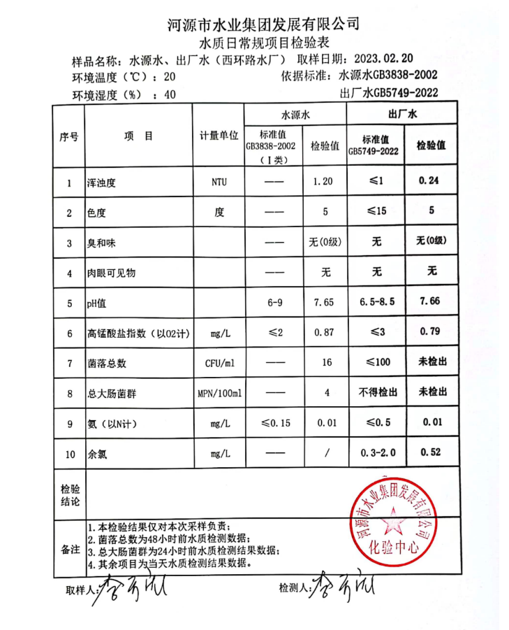 2023年2月20日水質(zhì)檢驗(yàn)報(bào)告