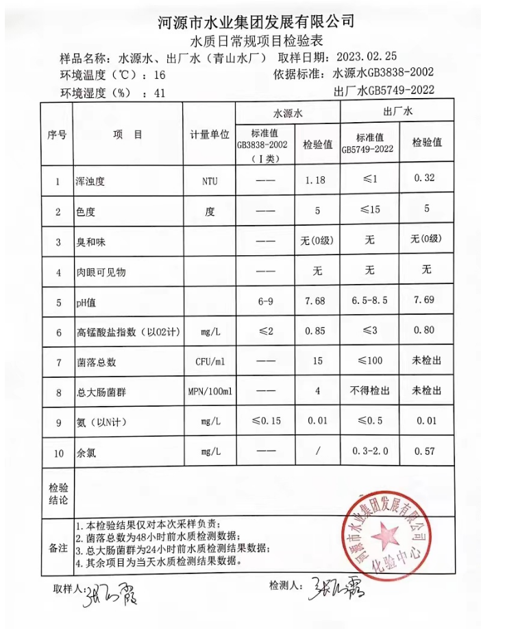 2023年2月25日水質(zhì)檢驗(yàn)報(bào)告