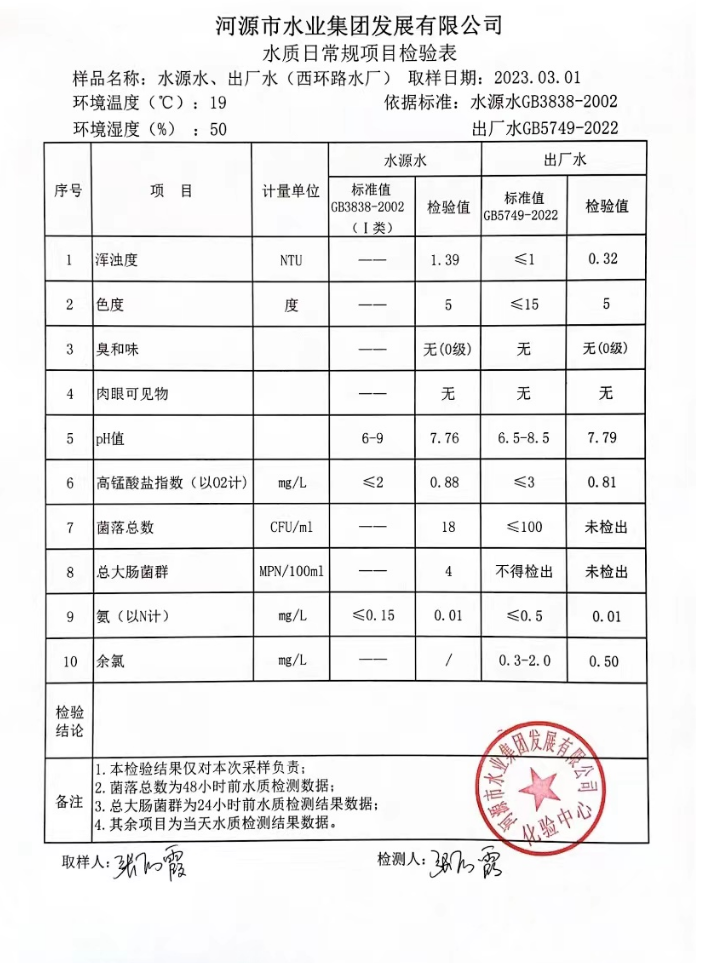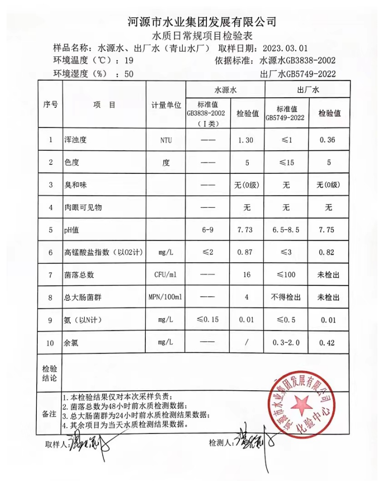 2023年3月1日水質(zhì)檢驗報告