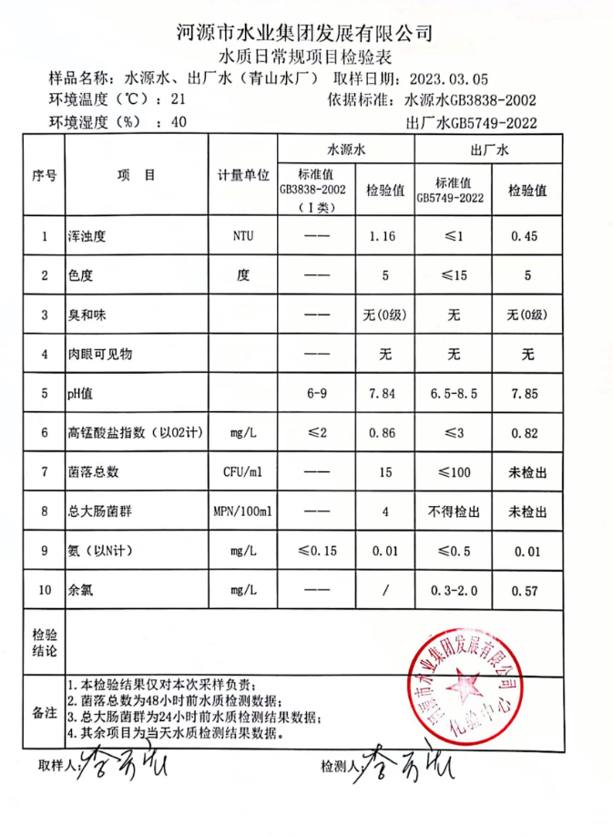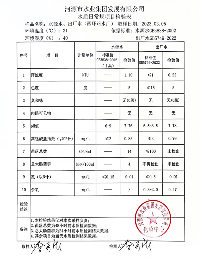 2023年3月5日水質(zhì)檢驗(yàn)報(bào)告