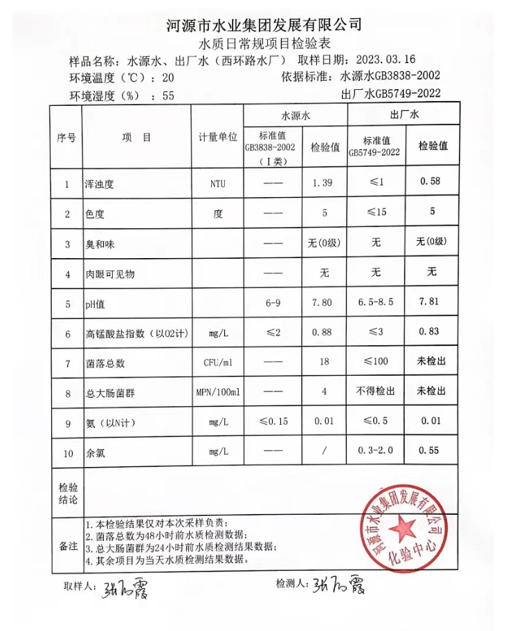 2023年3月16日水質(zhì)檢驗(yàn)報(bào)告