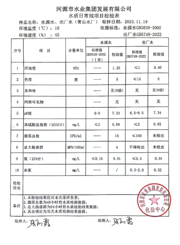 2023年11月19日水質(zhì)檢驗(yàn)報(bào)告 ???