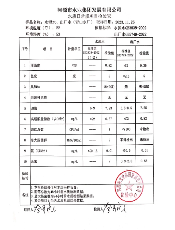 2023年11月26日水質(zhì)檢驗(yàn)報(bào)告 ???