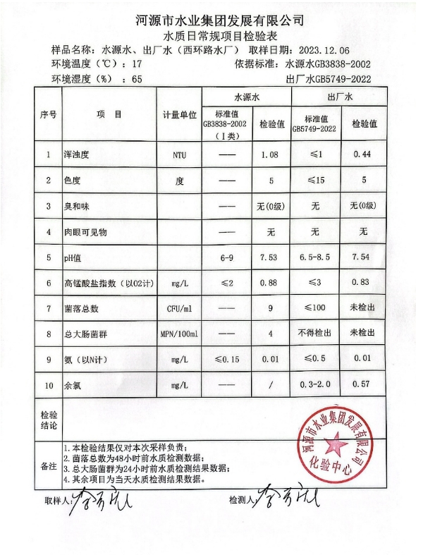 2023年12月6日水質(zhì)檢驗(yàn)報(bào)告 ???