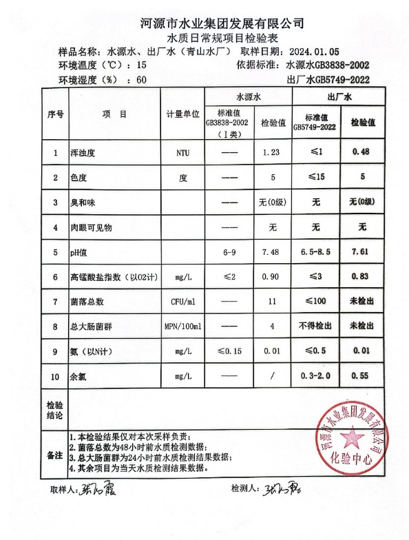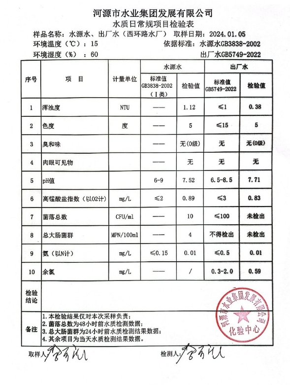 2024年1月5日水質(zhì)檢驗(yàn)報(bào)告 ???
