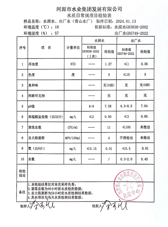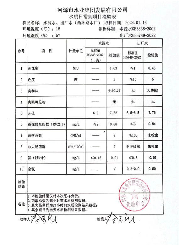 2024年1月13日水質(zhì)檢驗(yàn)報(bào)告 ???