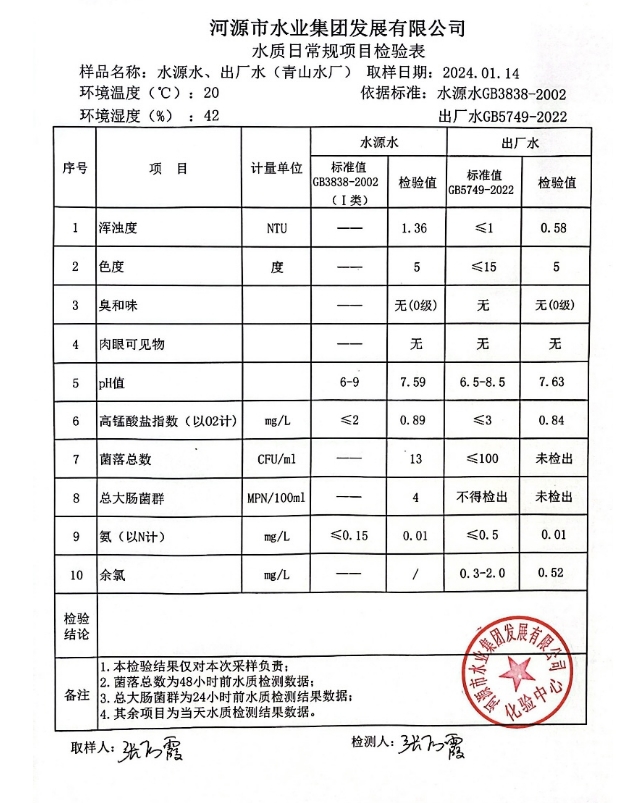2024年1月14日水質(zhì)檢驗(yàn)報(bào)告 ???