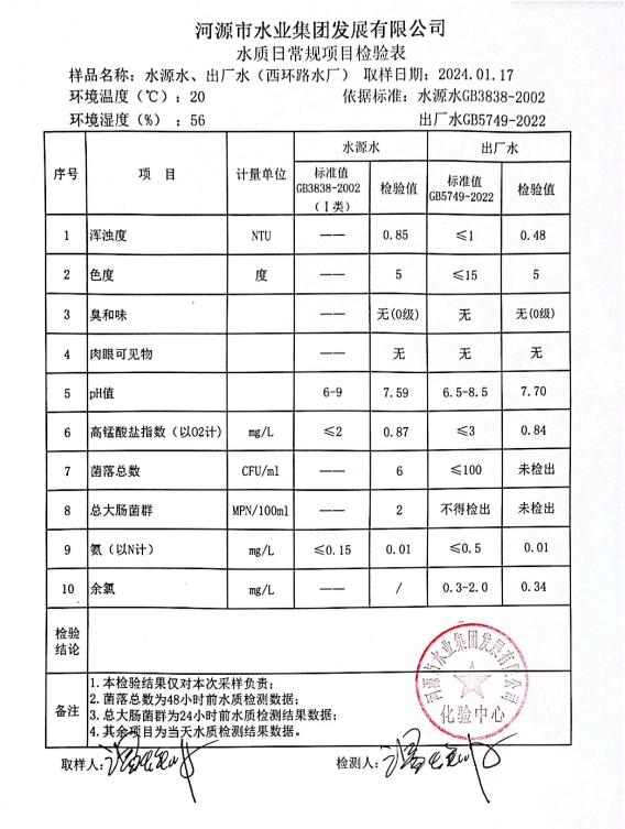 2024年1月17日水質(zhì)檢驗(yàn)報(bào)告 ???
