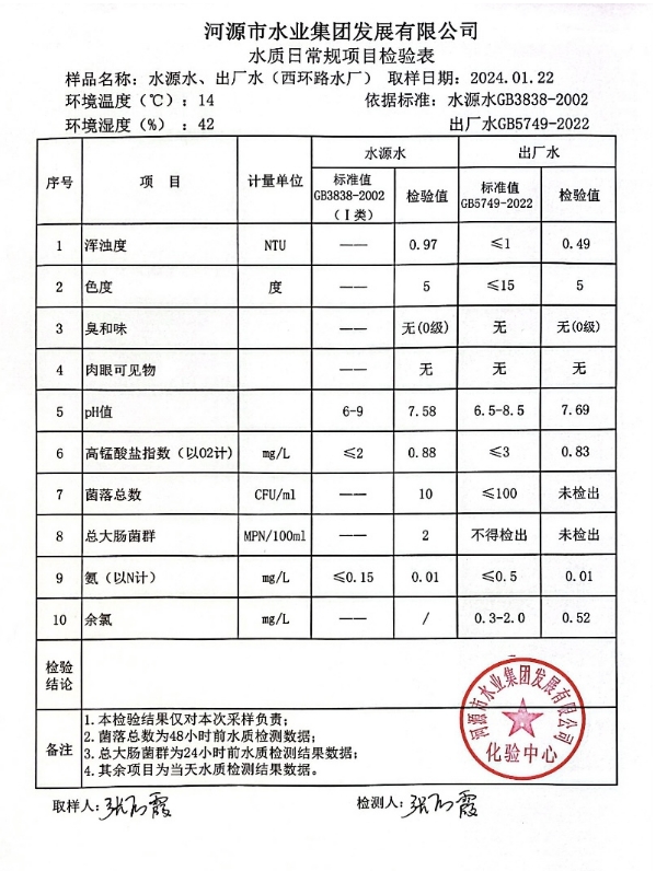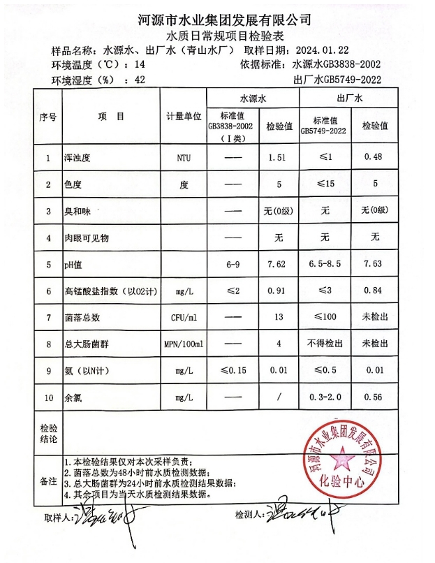2024年1月22日水質(zhì)檢驗(yàn)報(bào)告 ???