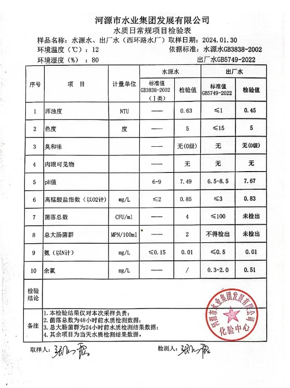 2024年1月30日水質(zhì)檢驗(yàn)報(bào)告 ???