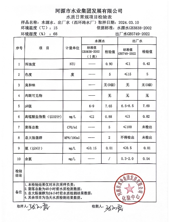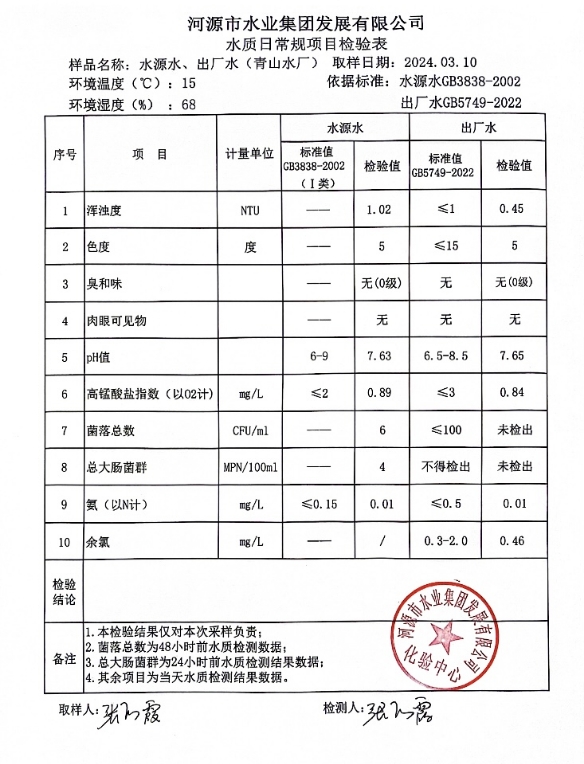 2024年3月10日水質(zhì)檢驗報告 ???