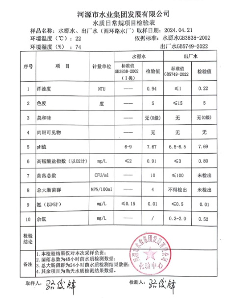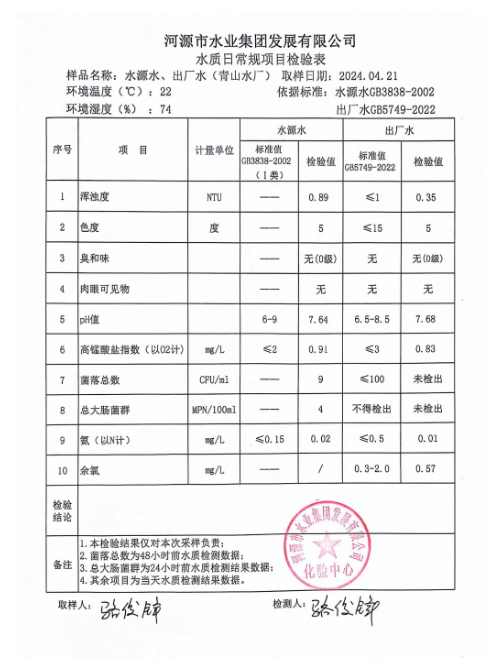 2024年4月21日水質(zhì)檢驗(yàn)報告