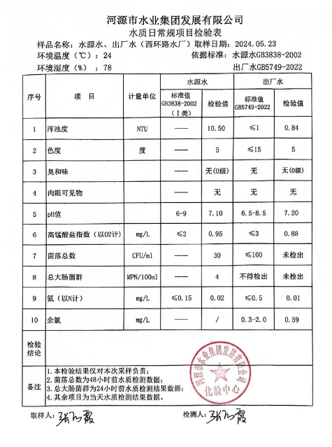 2024年5月23日水質(zhì)檢驗(yàn)報(bào)告 ???