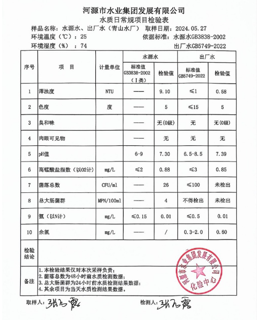 2024年5月27日水質(zhì)檢驗(yàn)報告 ???