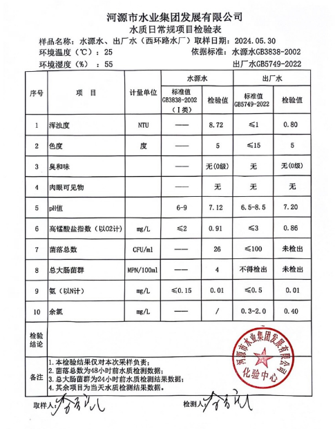 2024年5月30日水質(zhì)檢驗(yàn)報(bào)告 ???
