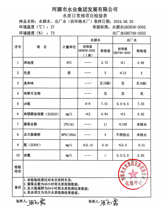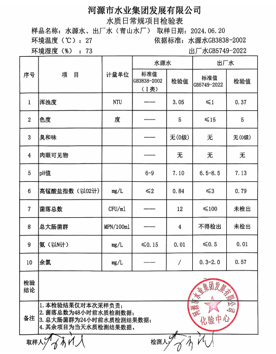2024年6月20日水質(zhì)檢驗(yàn)報告