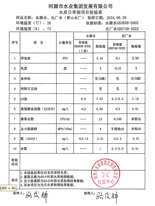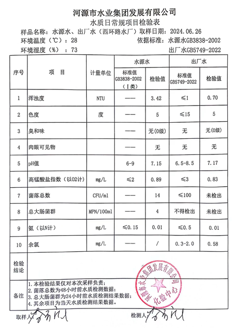 2024年6月26日水質(zhì)檢驗(yàn)報(bào)告