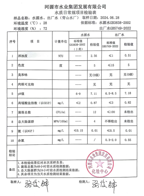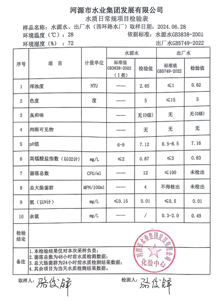 2024年6月28日水質(zhì)檢驗(yàn)報(bào)告