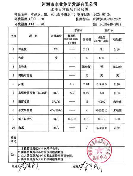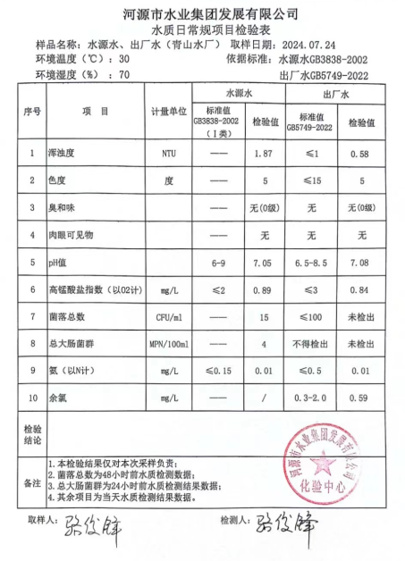 2024年7月24日水質(zhì)檢驗(yàn)報(bào)告