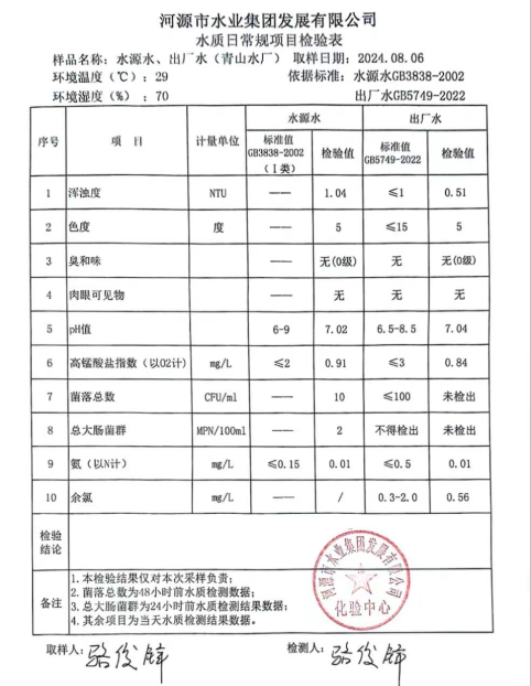 2024年8月6日水質(zhì)檢驗(yàn)報(bào)告