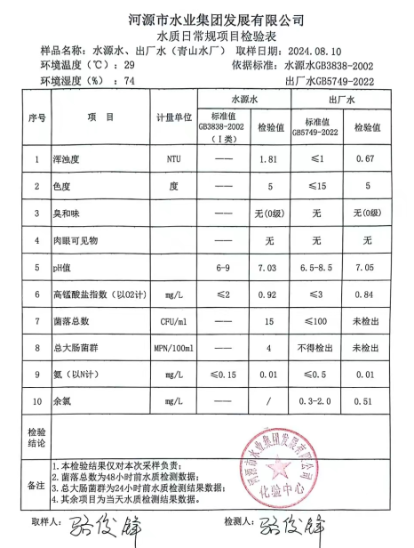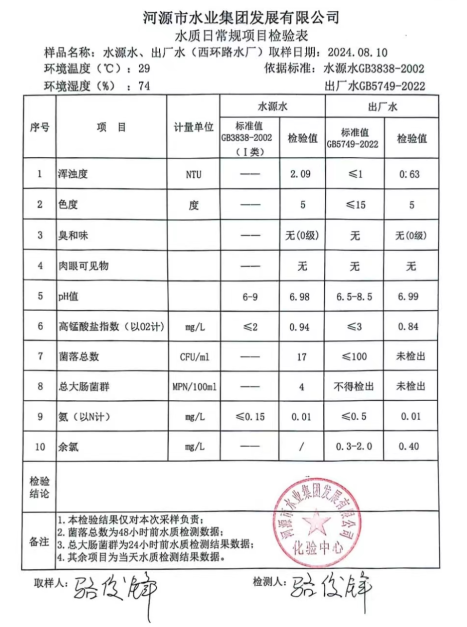 2024年8月10日水質(zhì)檢驗(yàn)報告
