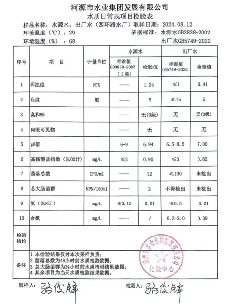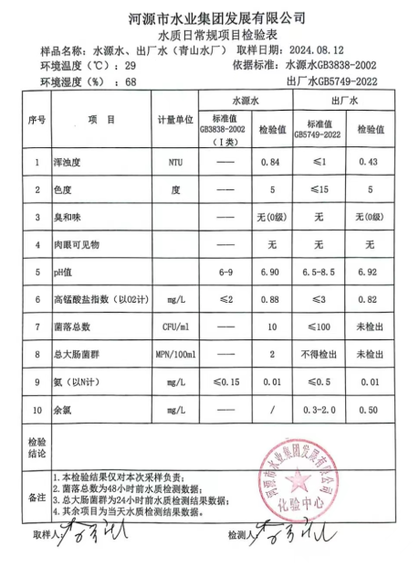 2024年8月12日水質(zhì)檢驗(yàn)報(bào)告