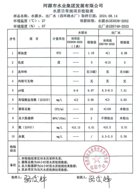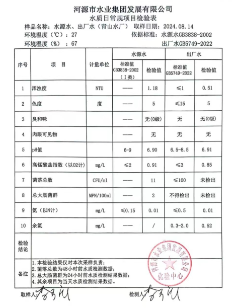 2024年8月14日水質(zhì)檢驗(yàn)報(bào)告
