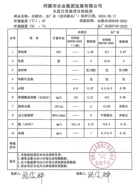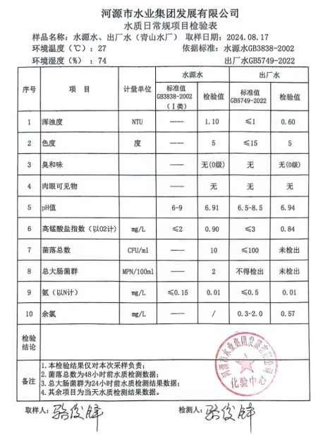 2024年8月17日水質(zhì)檢驗(yàn)報(bào)告