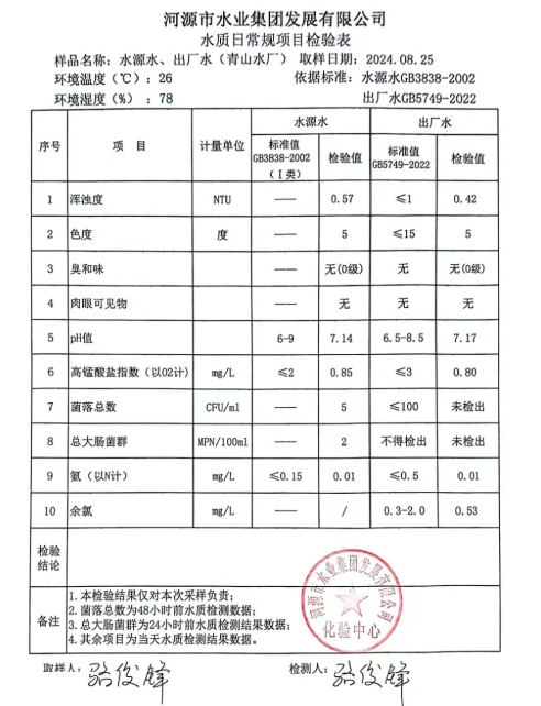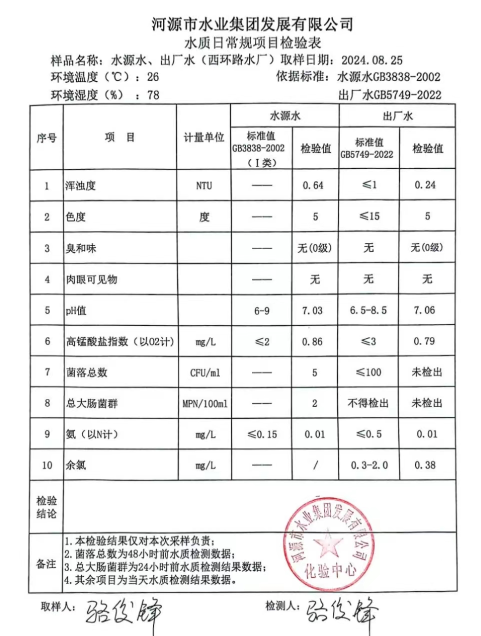 2024年8月25日水質(zhì)檢驗(yàn)報告