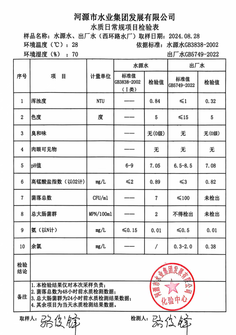 2024年8月28日水質(zhì)檢驗(yàn)報(bào)告