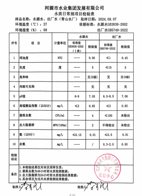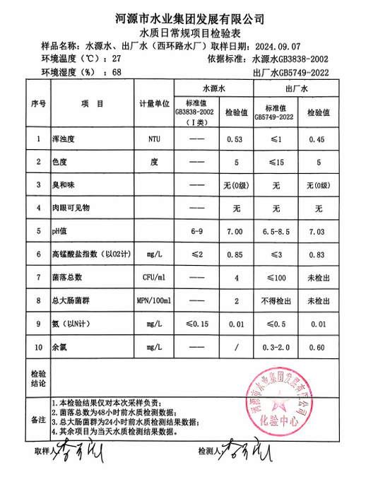 2024年9月7日水質(zhì)檢驗(yàn)報(bào)告