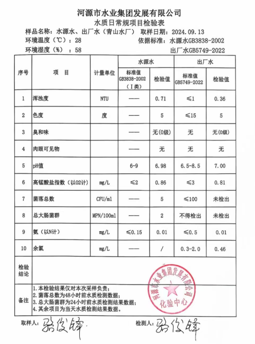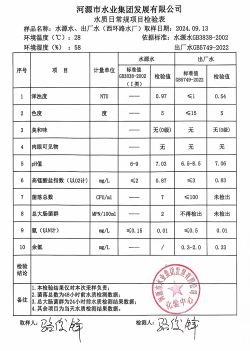 2024年9月13日水質(zhì)檢驗(yàn)報(bào)告