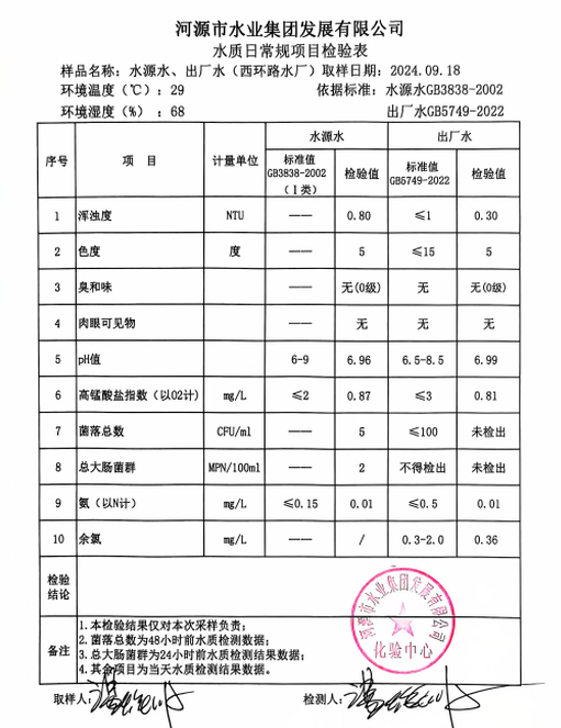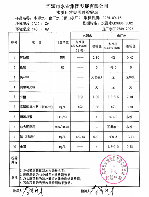 2024年9月18日水質(zhì)檢驗報告