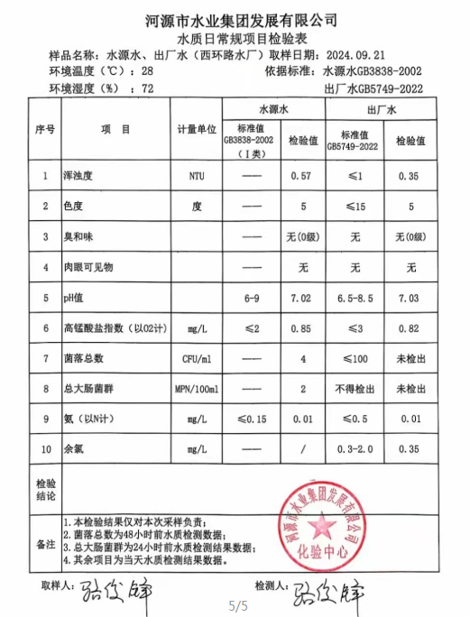 2024年9月21日水質(zhì)檢驗(yàn)報(bào)告