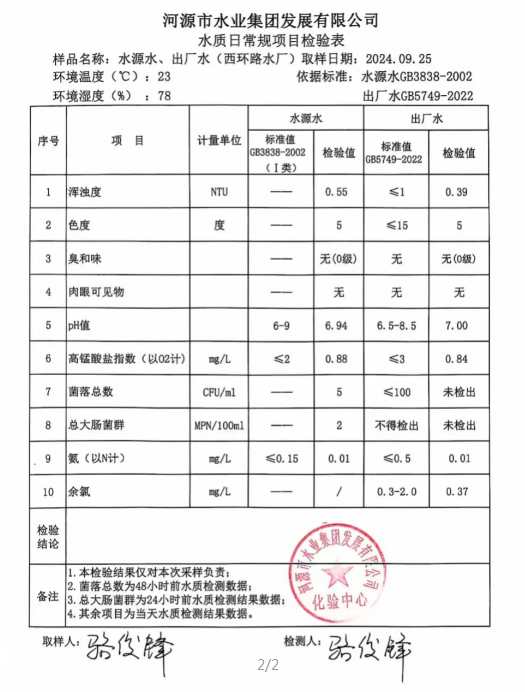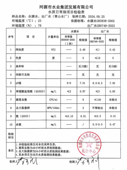2024年9月25日水質(zhì)檢驗報告