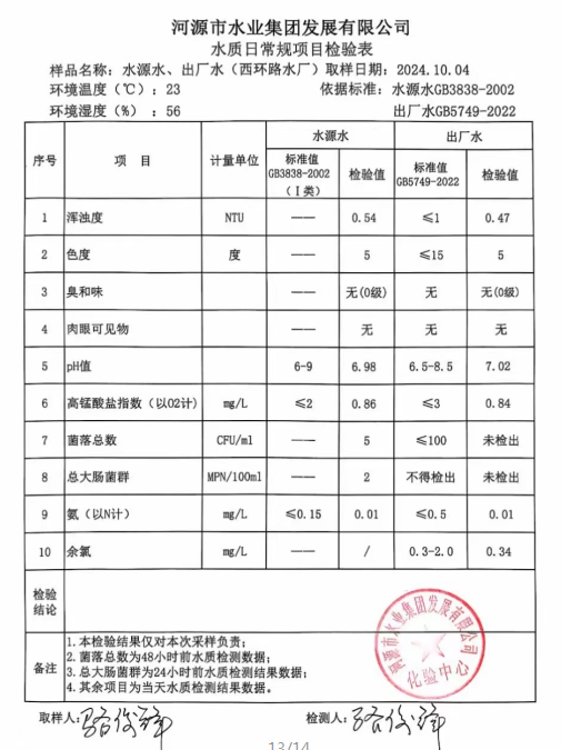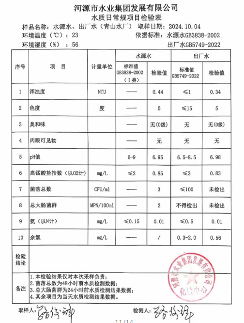 2024年10月4日水質檢驗報告
