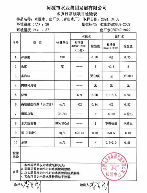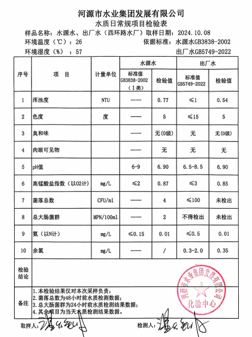 2024年10月8日水質(zhì)檢驗(yàn)報(bào)告